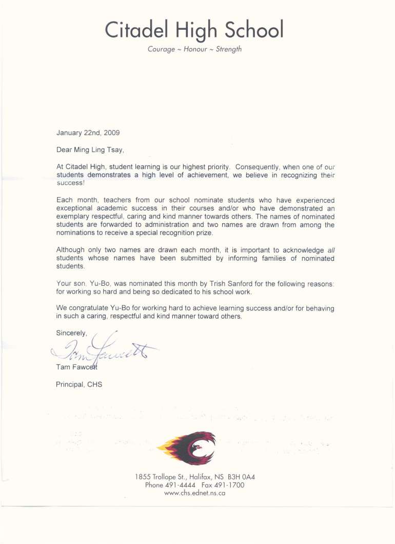 沈裕博同学 - 高中教师推荐奖