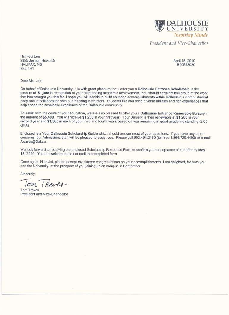 李昕叡同学 - Dalhousie University 奖学金