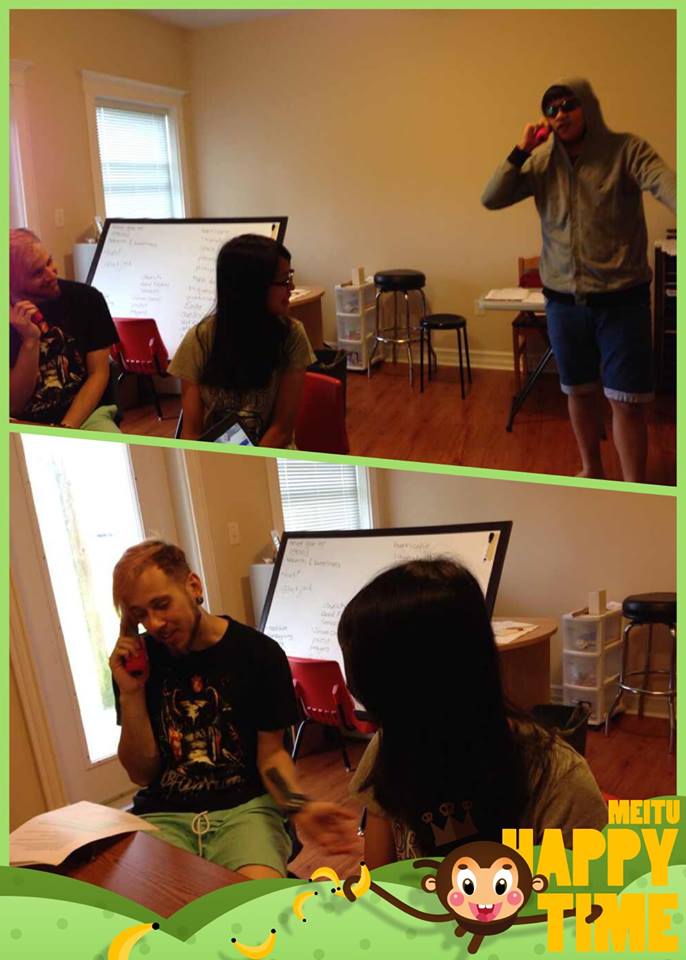現在傳的照片是排演時的,所以手上還拿著腳本,正式演出時用攝影機記錄,就沒有照片了。因為孩子們平時也忙,所以演出中難免忘詞,不過我們這幾個老師都很滿意了。