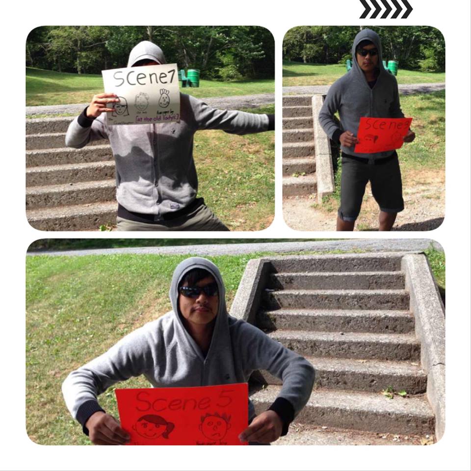 耶~!孩子們已經不再需要拿著腳本排練了!而且也有餘力做換場標語,看他們投入的程度,可以預見一場精彩的表演即將呈現。