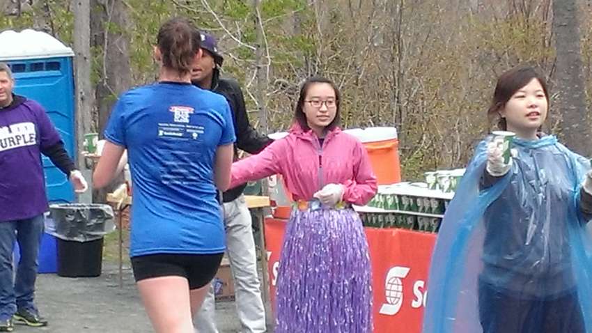 一年一度的哈利法克斯 藍鼻馬拉松,AITEC 同學們在給水站擔任義工,給路跑者遞水、高聲加油打氣!