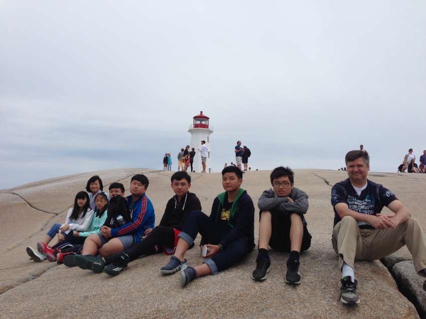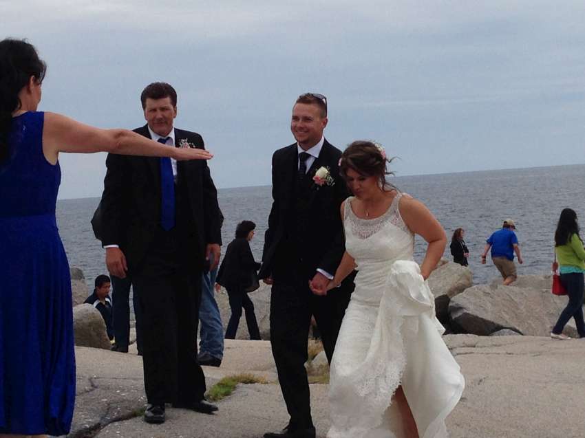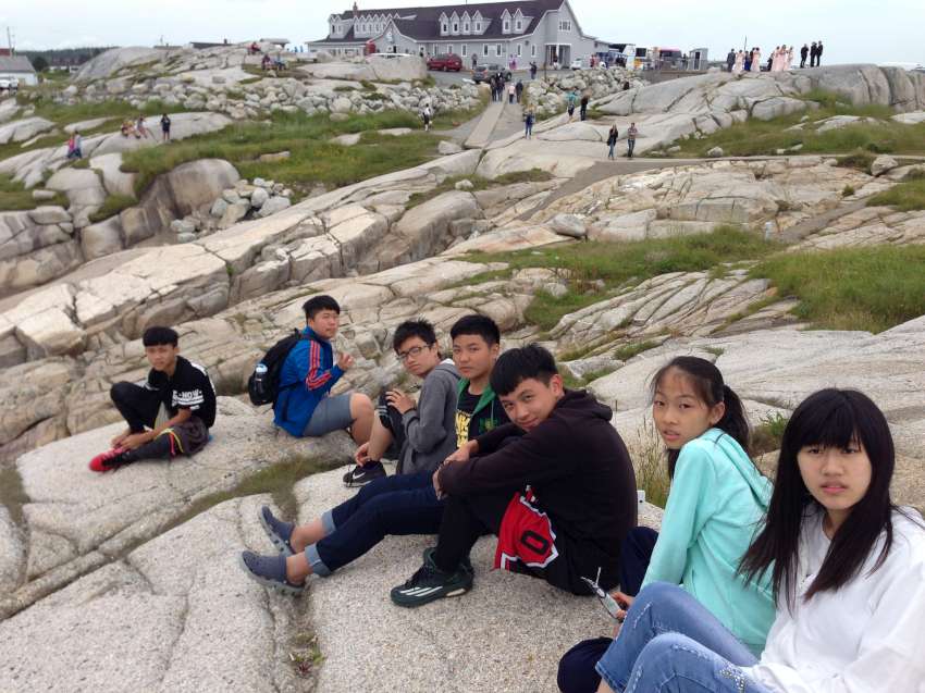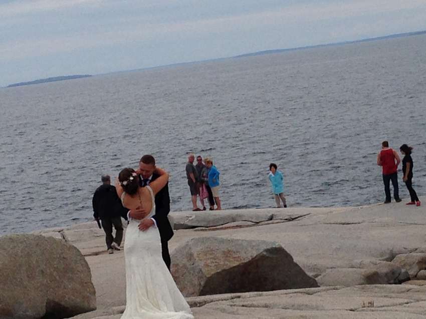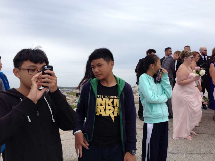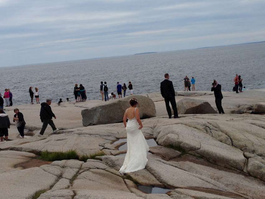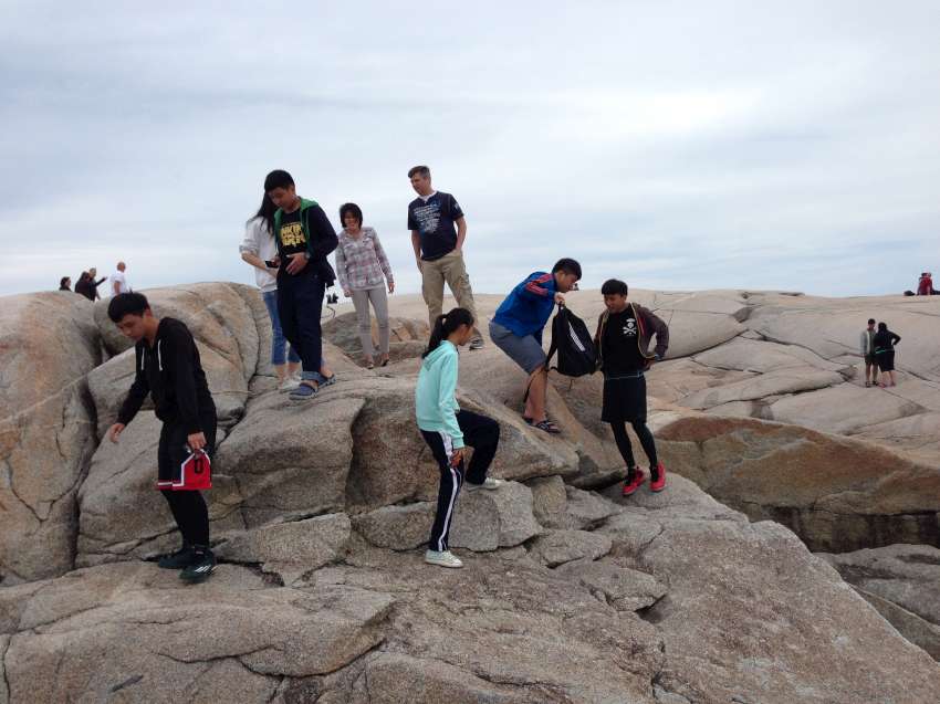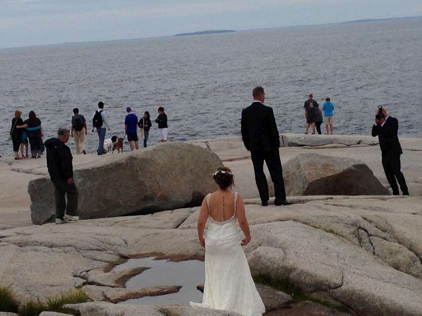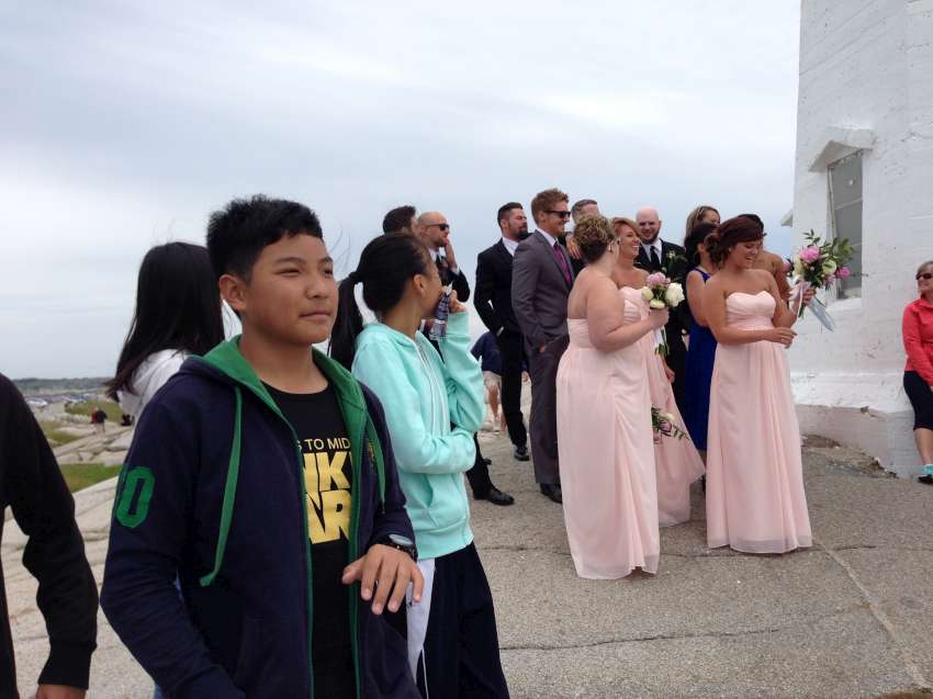 Nova Scotia 省的著名景點佩吉灣是個參觀景點,AITEC 出游的這一天剛好遇到新人結婚,我們當中的兩位同學很不害羞的上前與新郎自我介紹:"Hi, my name is Andrew/Michelson. Hope you have many kids! 祝你們多子多孫!" 讓賓客們和我們哈哈大笑,攝影師也請我們這些 "遊客" 入鏡留念!