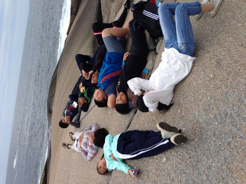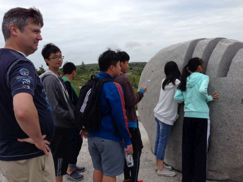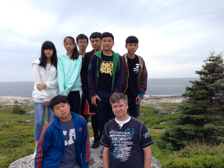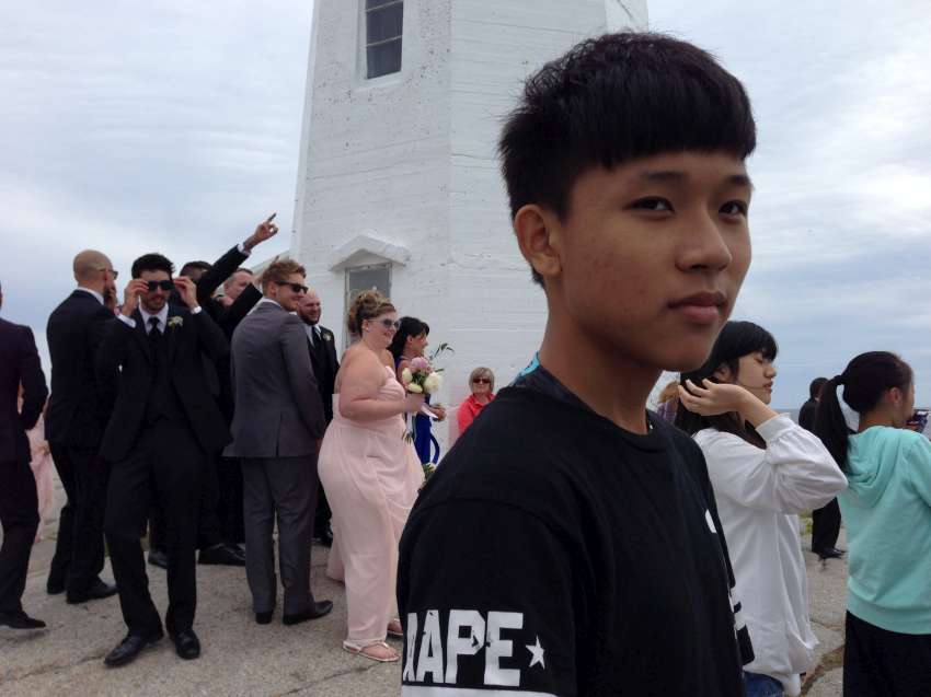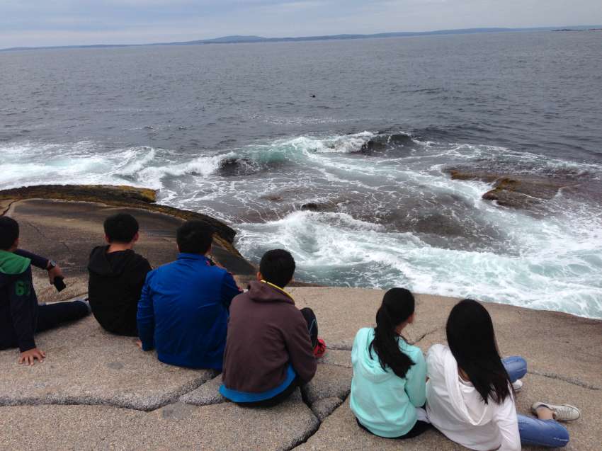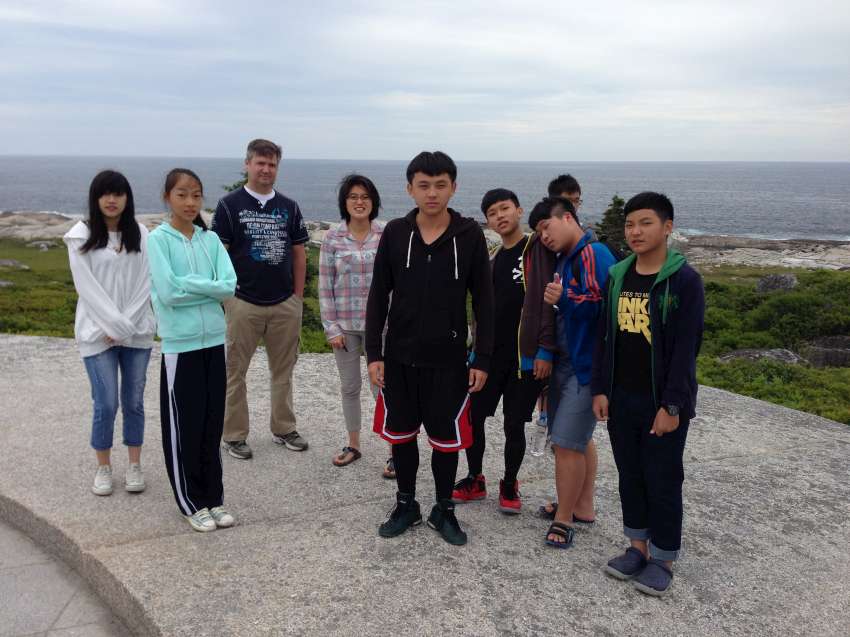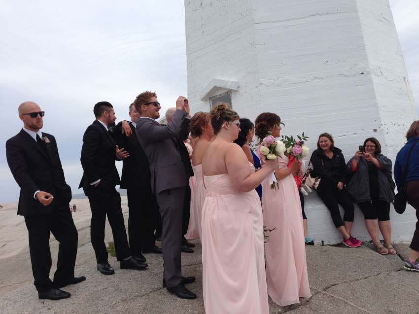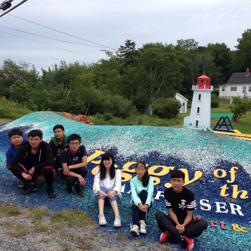 Nova Scotia 省的著名景點佩吉灣是個參觀景點,AITEC 出游的這一天剛好遇到新人結婚,我們當中的兩位同學很不害羞的上前與新郎自我介紹:"Hi, my name is Andrew/Michelson. Hope you have many kids! 祝你們多子多孫!" 讓賓客們和我們哈哈大笑,攝影師也請我們這些 "遊客" 入鏡留念!