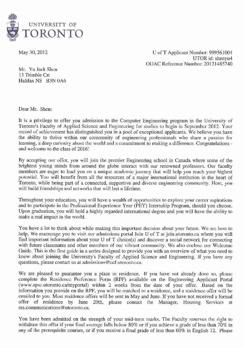 沈淵泰同學 - 多倫多大學申請成功
