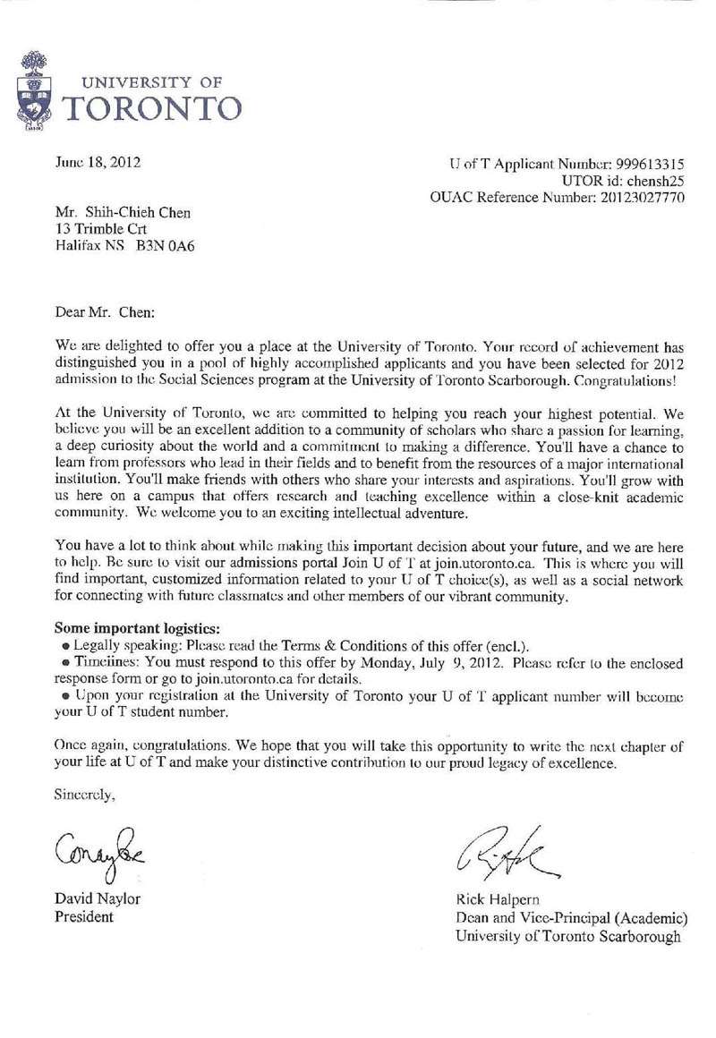 陳世杰同學 - 多倫多大學申請成功